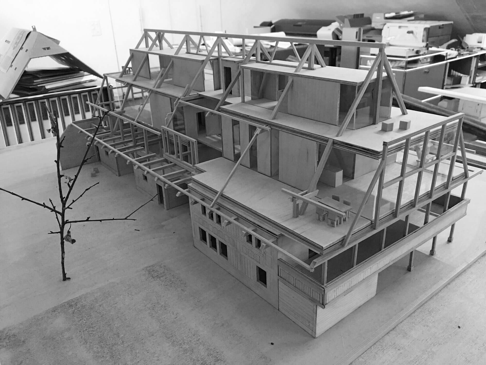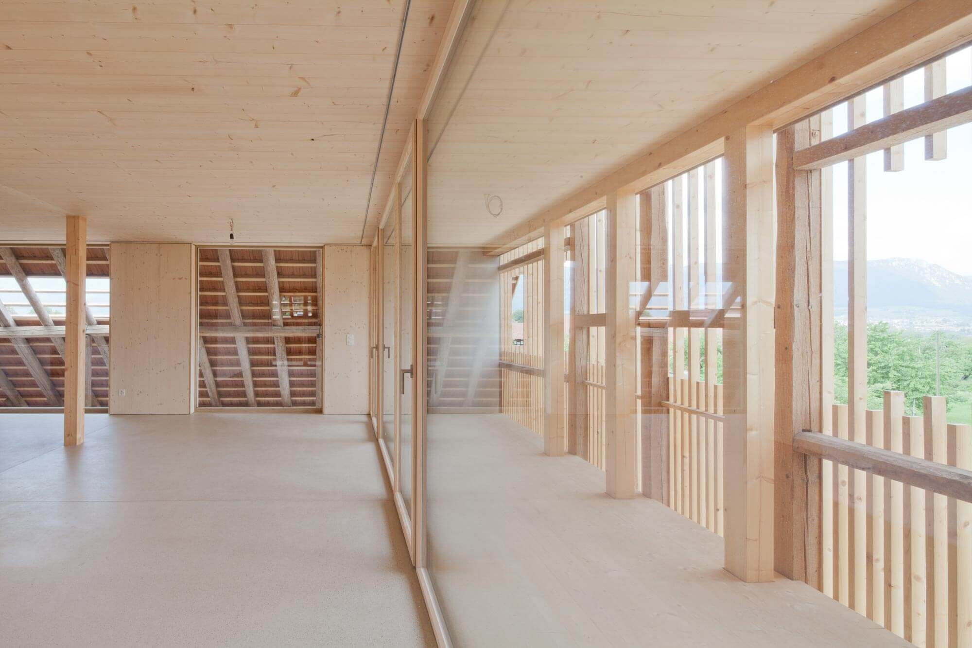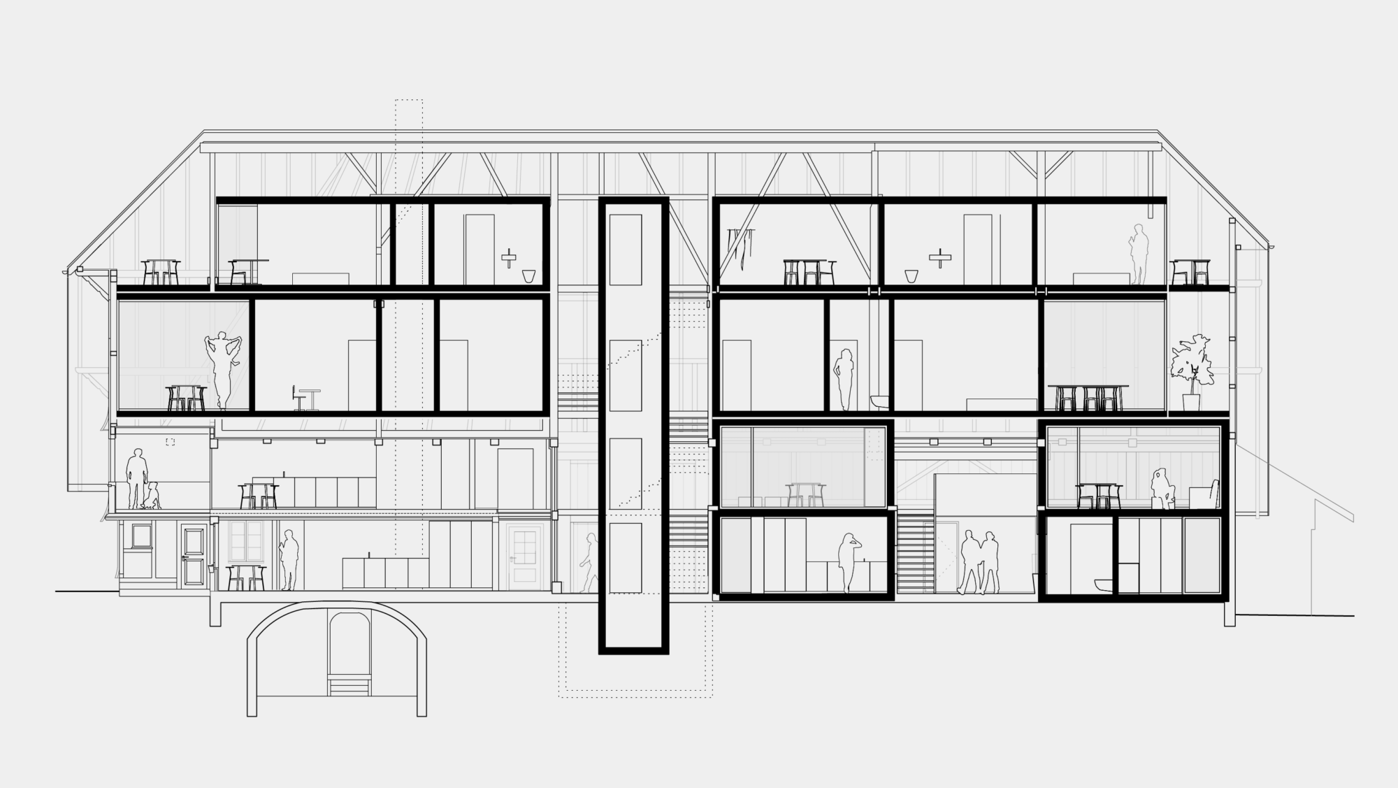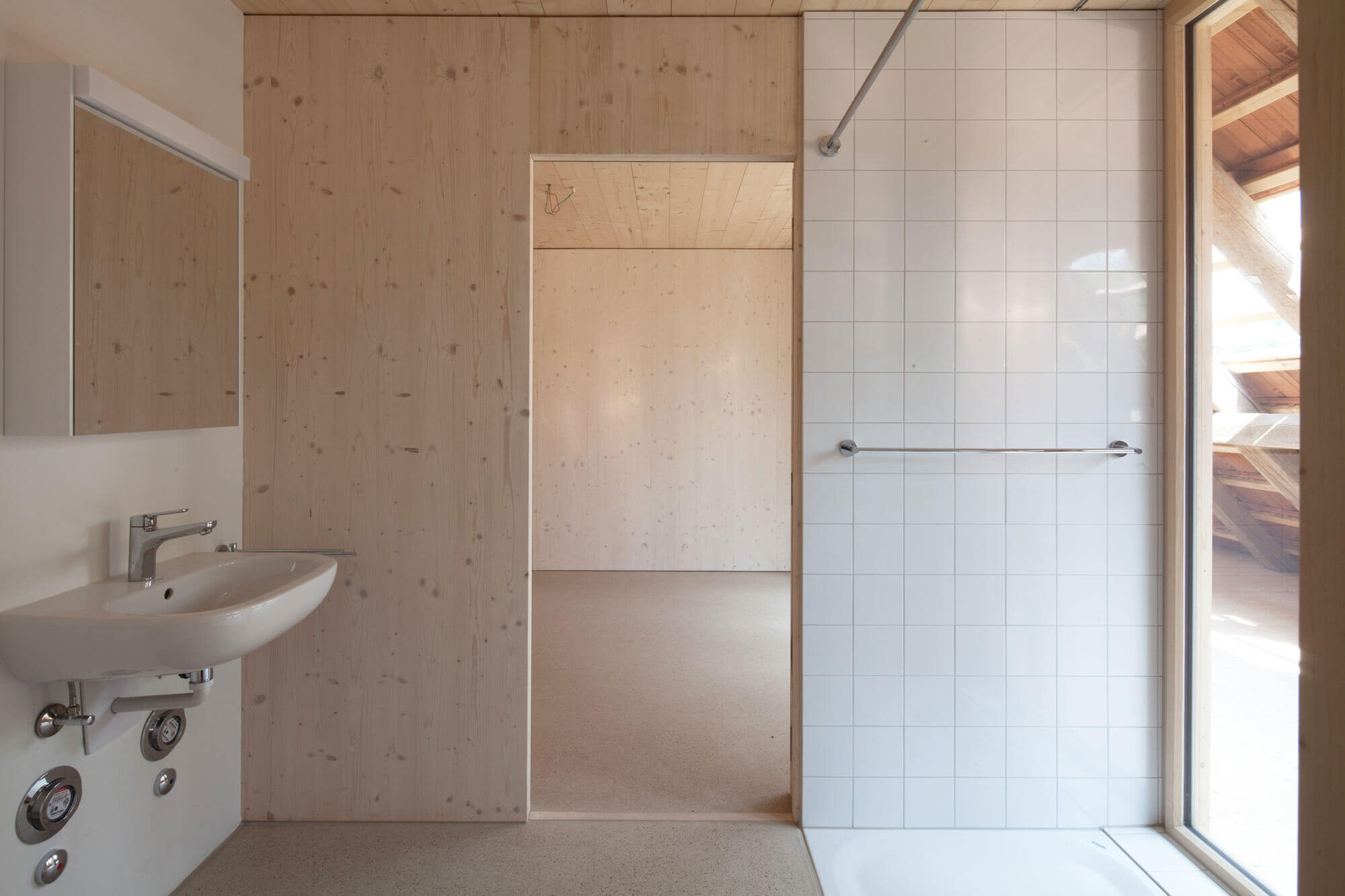 Das zentral liegende, schützenswerte Bauernhaus wurde von der Gemeinde erworben, um Alterswohnungen zu realisieren. Um die Qualitäten des geschützten Gebäudes zu erhalten, wird die bestehende Gebäudestruktur vollständig belassen. Die altersgerechten Wohnungen werden als Elemente in die bestehende Hülle eingebaut. So entsteht im Dachraum eine Vielfalt von privaten und halbprivaten geschützten Aussenräumen. Das Gebäude wird mit einer behindertengerechten Erschliessung (Lift) und die neuen Wohnungen rollstuhlgängig ausgeführt.