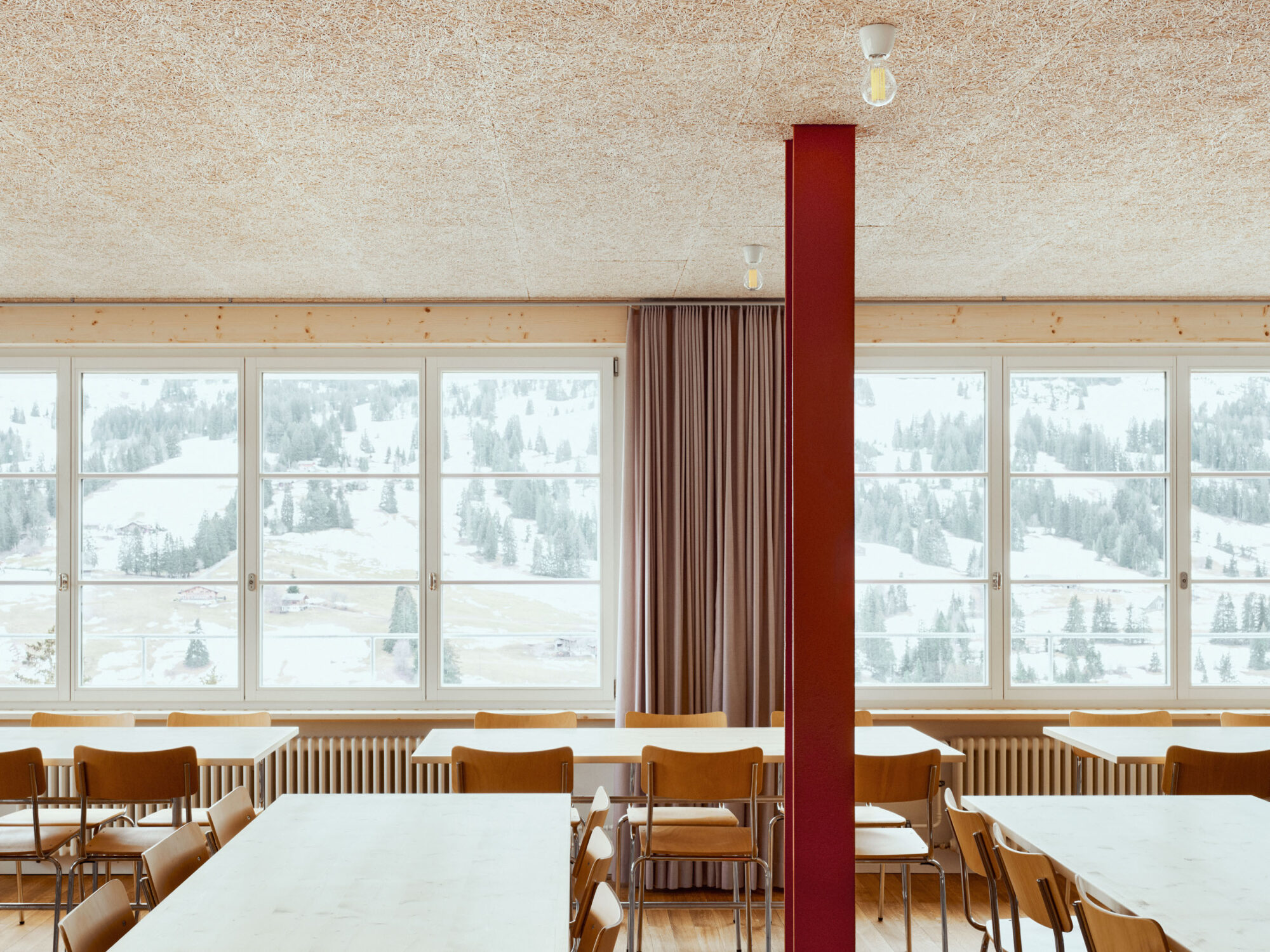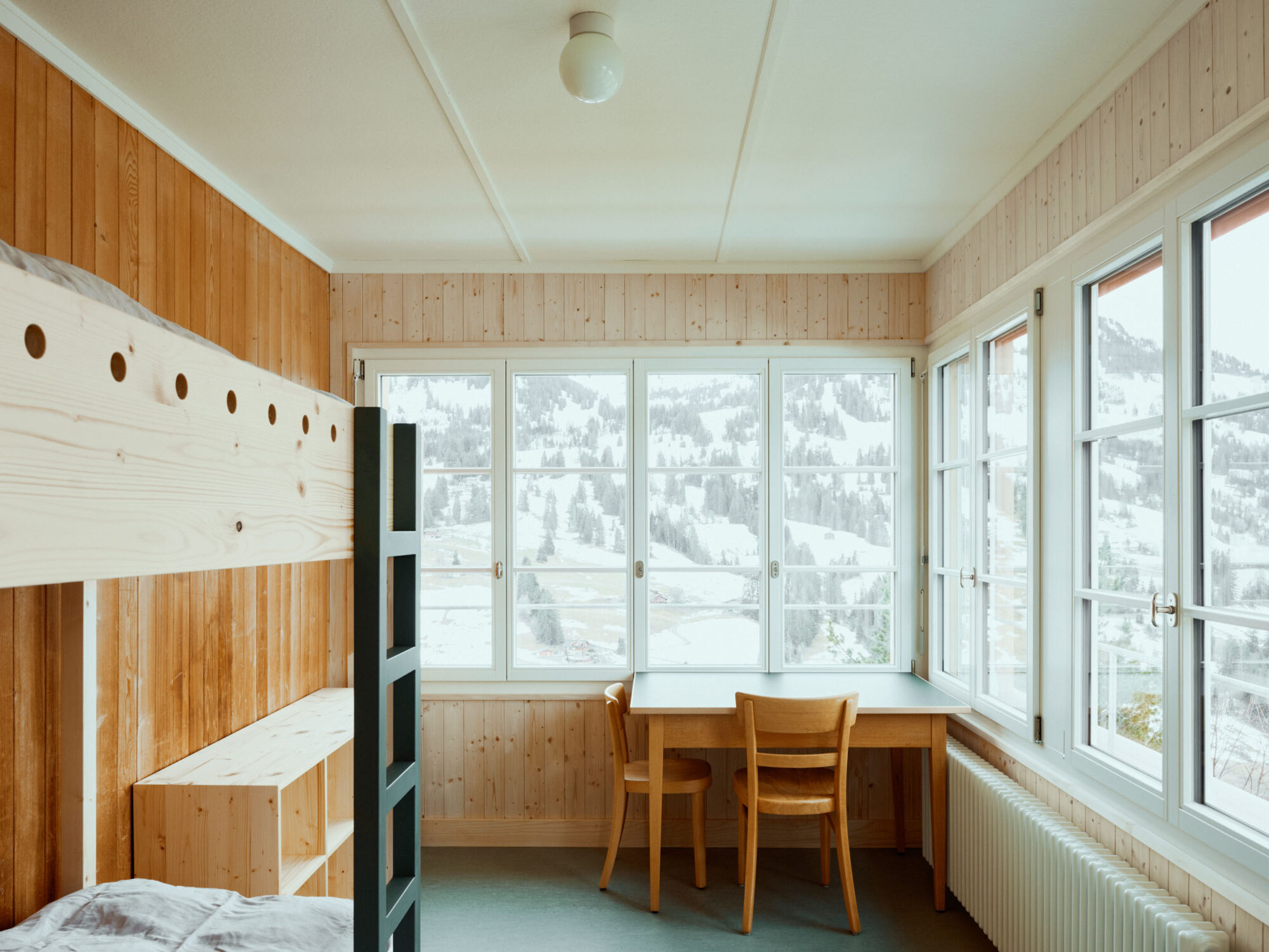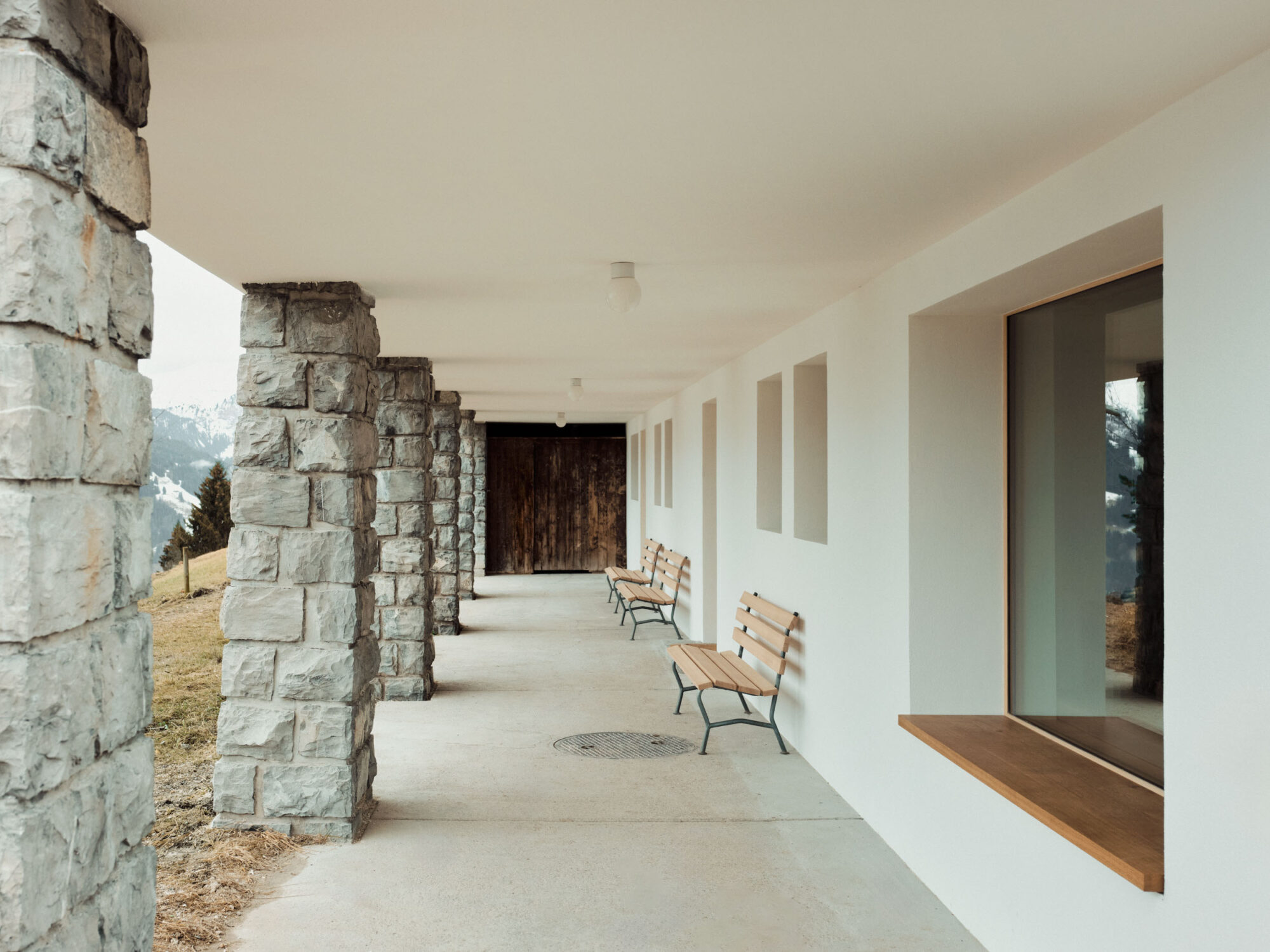 Das Konzept der Sanierung ist es, trotz der teilweise massiven Eingriffe, die ursprüngliche Identität und den Wiedererkennungswert des Ferienheimes zu erhalten. Neue Elemente und Interventionen werden zeitgemäss umgesetzt und sollen ablesbar sein. Bauteile, welche intakt sind und für die Identität des Gebäudes charakteristisch sind, sollen wenn immer möglich erhalten werden.
