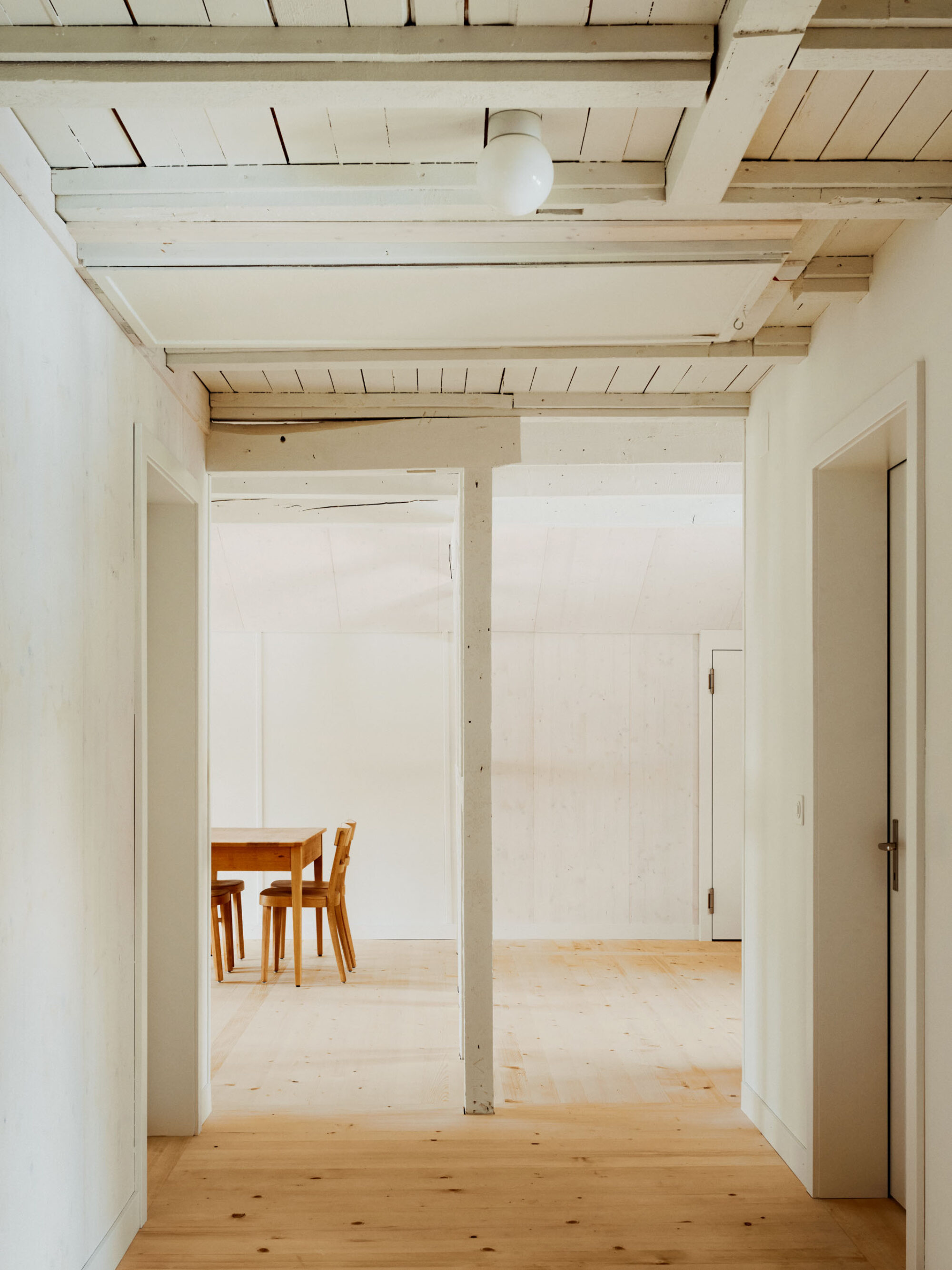 Ziel ist ein Umgang mit dem Bestand, der einerseits in der Direktheit des Abbruchs und andererseits im kompromisslosen Erhalt, das Haus in seiner ursprünglichen Kraft würdigt und ihm zugleich ein zweites Leben einhaucht. Auf vereinheitlichende Massnahmen soll bewusst verzichet werden. Die ursprünglichen Elemente des Hauses bleiben atmosphärisch prägend, ohne dass sie zur Dekoration werden. Teils können sie ihre ursprüngliche Aufgabe noch lange weiter erfüllen, teils bleiben sie als Spuren lesbar.