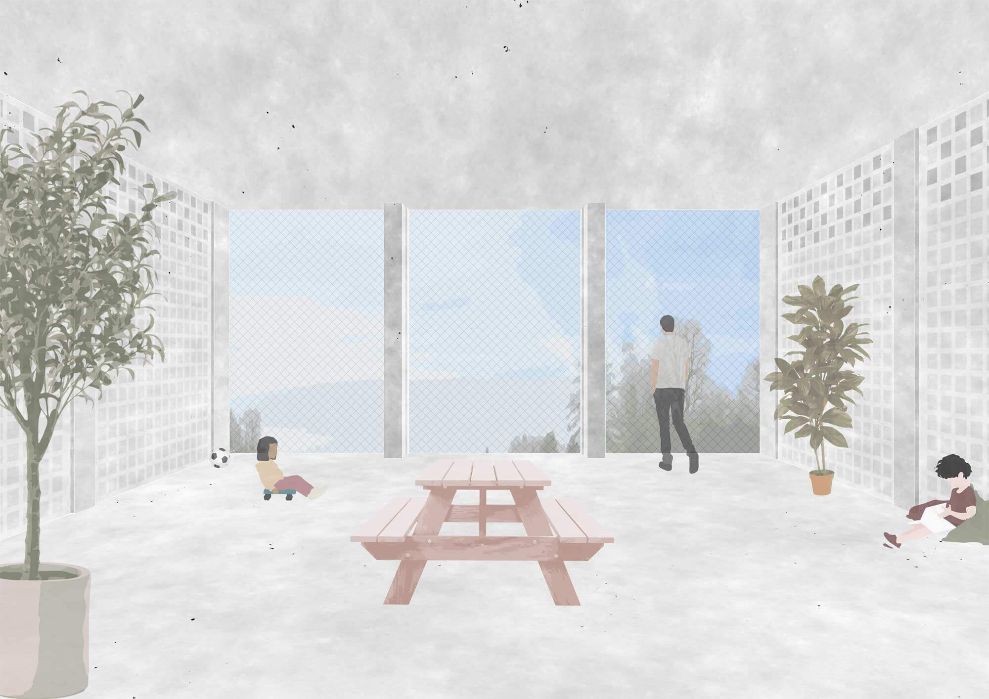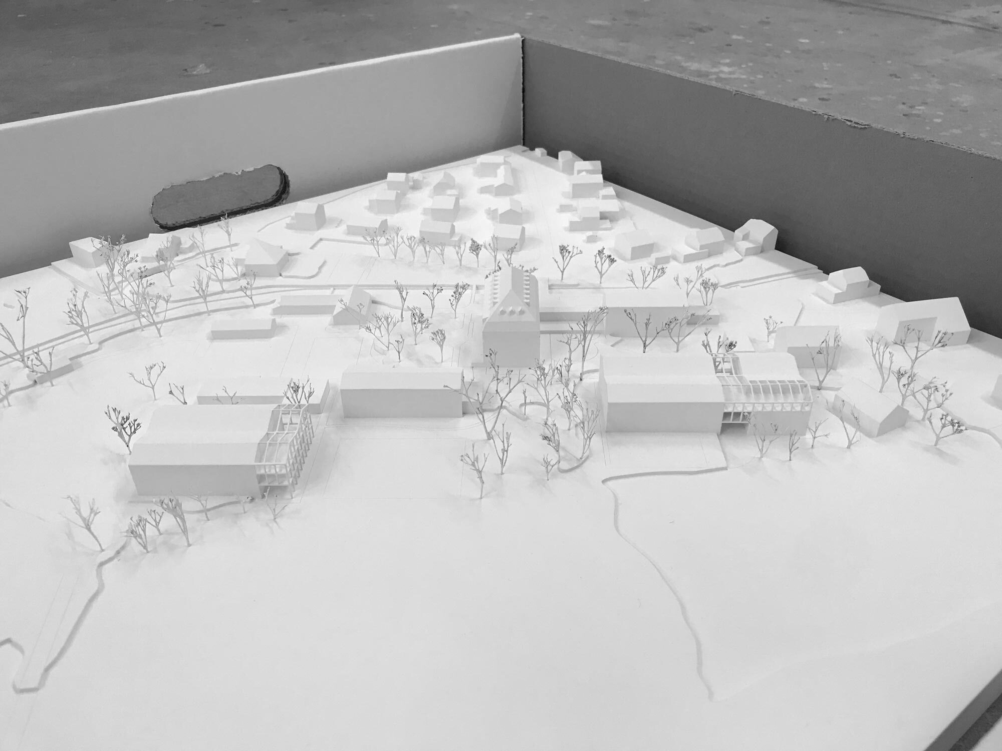 Das Projekt für die Schulerweiterung der sonderpädagogischen Institution focus jugend schlägt zwei Baukörper vor: Das Unterstufenschulhaus im Süden der Parzelle und das Oberstufenschulhaus mit der Turnhalle im Norden der Parzelle. Die beiden neuen Gebäude betten sich dank ihrer Orientierung und den Steildächern ganz natürlich in den Bestand der Anlage ein.