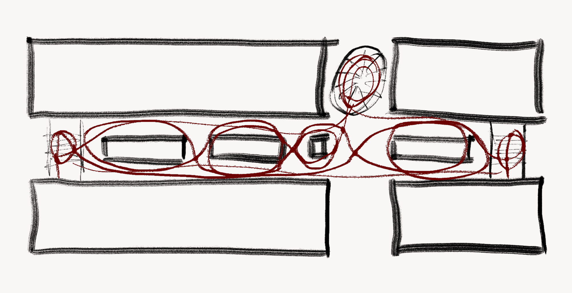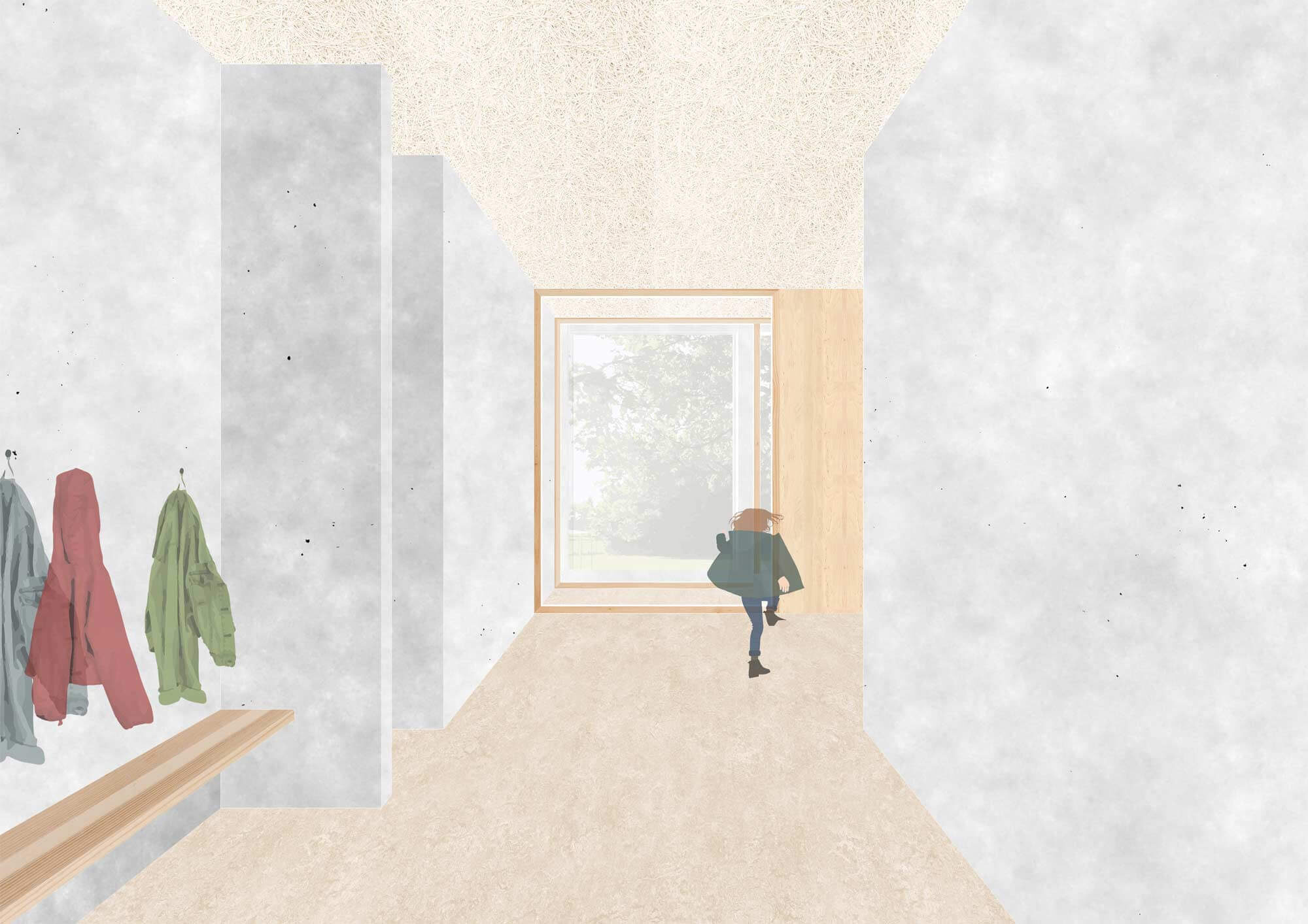 Die beiden Schulgebäude basieren auf dem gleichen Prinzip und sind in ihrem Innern bis auf wenige Ausnahmen gleich organisiert. Diese Einfachheit und Analogie erleichtert den Kindern die Orientierung und hilft Ihnen, sich wohl zu fühlen. Beide Schulhäuser verfügen über einen transparenten Zwischenraum. Dieser ist gleichzeitig Erschliessungsraum, Pausenhalle, Terrasse und Treffpunkt für die Kinder der verschiedenen Klassen.