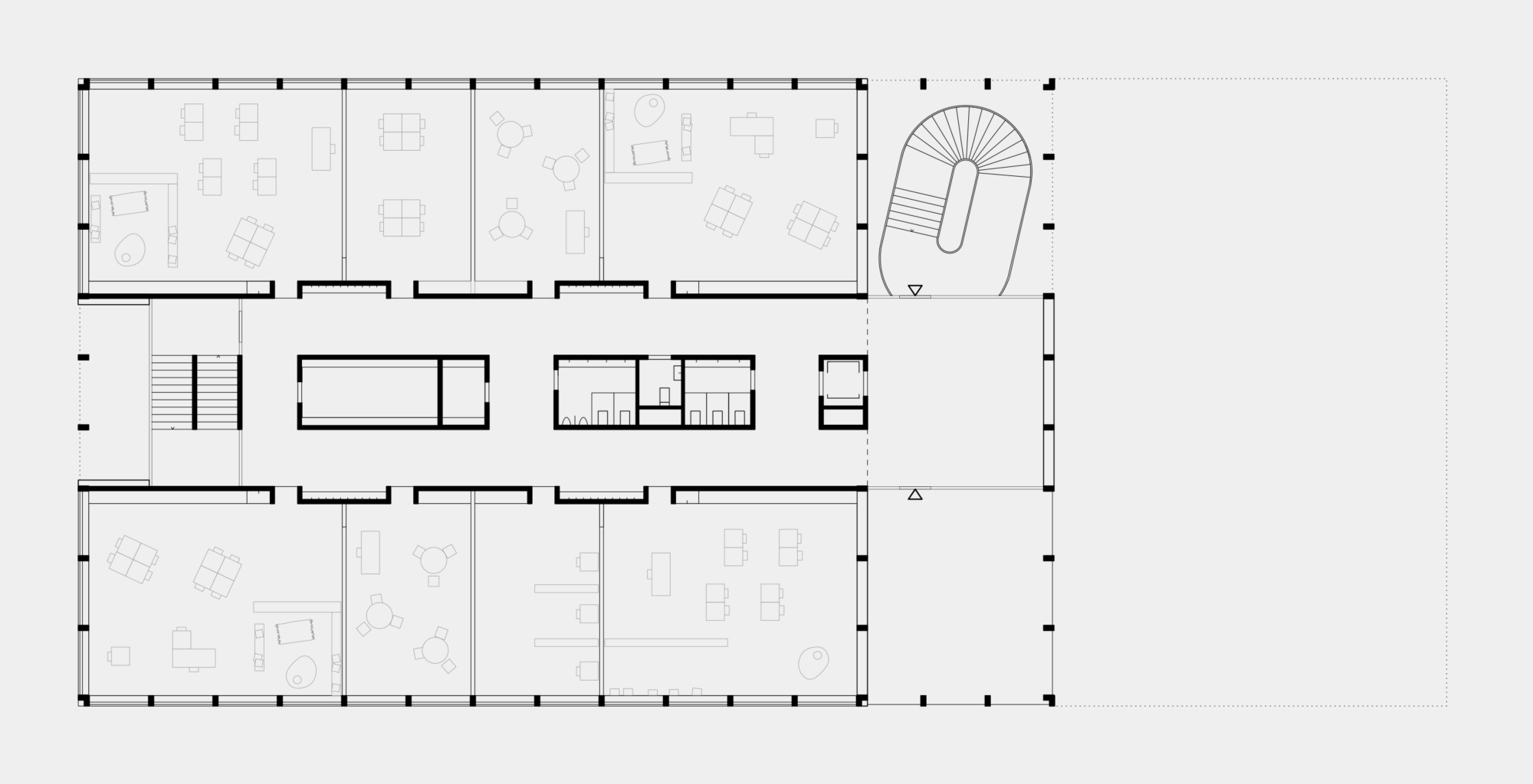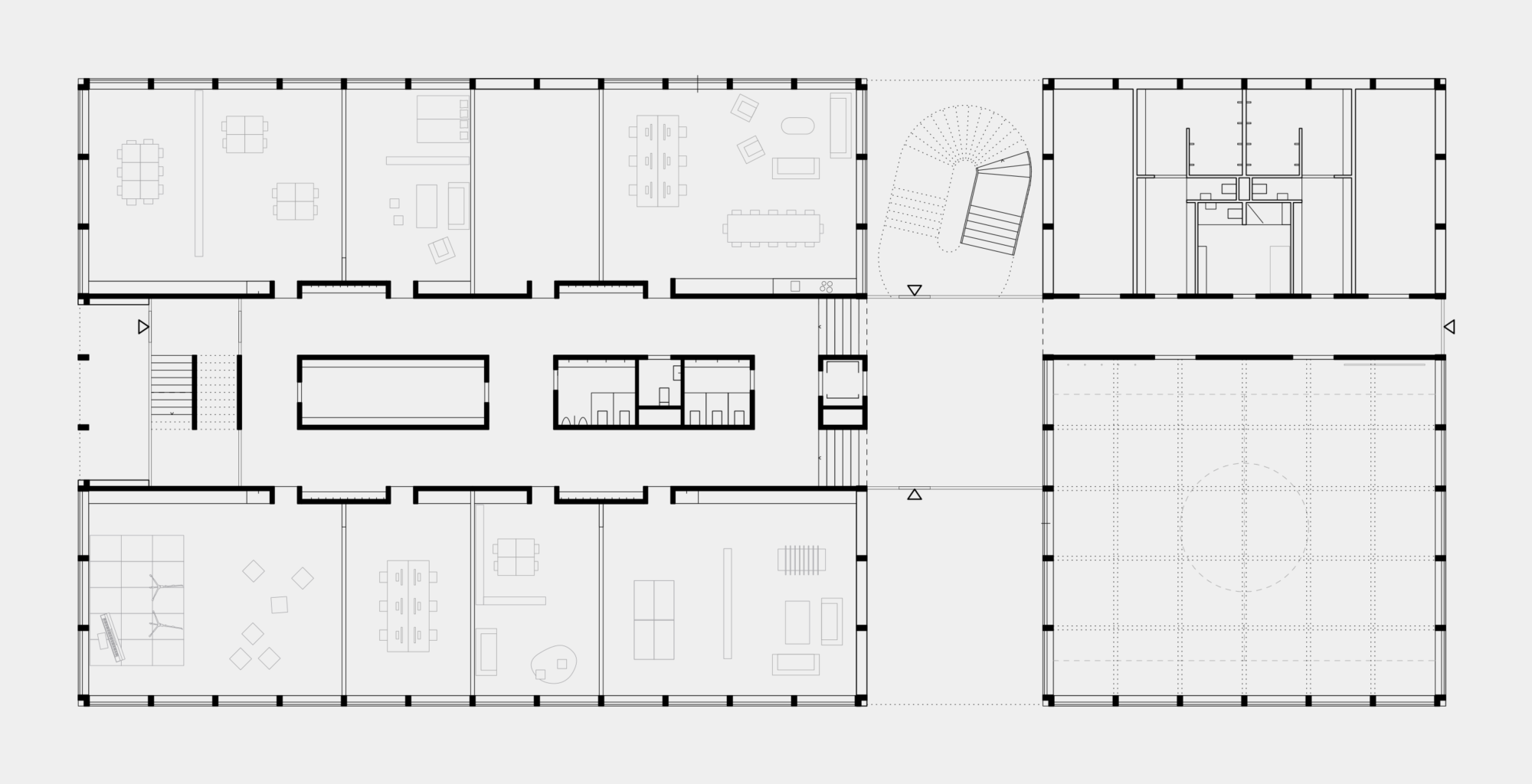 Die Klassen- und Gruppenräume reihen sich, getrennt durch nichttragende Wände aneinander. Dies garantiert eine grosse Anpassungsfähigkeit für künftige Bedürfnisse, denn so können die Räume beliebig neu angeordnet, zusammengelegt und aufgeteilt werden.